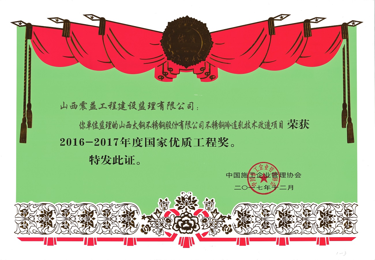 公司先后承擔(dān)了冶金、機(jī)械、電力、礦山、市政、環(huán)保、房屋建筑等工業(yè)及民用建設(shè)大中型工程項(xiàng)目1000余個(gè),足跡遍及國(guó)內(nèi)二十多個(gè)省市,在全國(guó)各地四千余個(gè)制造廠(chǎng)家進(jìn)行了駐廠(chǎng)設(shè)備監(jiān)理,工程監(jiān)理也立足省內(nèi)輻射全國(guó)多個(gè)省區(qū)乃至國(guó)外。多年來(lái),我們憑著嚴(yán)格監(jiān)理、優(yōu)質(zhì)服務(wù)的工作作風(fēng)贏(yíng)得業(yè)主的信任和好評(píng),受監(jiān)工程質(zhì)量合格率均為100%。由我公司監(jiān)理的太鋼7.63m焦?fàn)t(及配套化產(chǎn))工程、450㎡燒結(jié)工程、4350m3高爐工程、400萬(wàn)噸煉鋼/連鑄工程、2250mm熱軋工程、新不銹鋼冷軋工程、熱軋加熱爐工程、冶煉廢水處理工程、BOC制氧工程、40萬(wàn)噸及50萬(wàn)噸不銹鋼冷軋工程、制鐵煉鋼節(jié)能減排660㎡燒結(jié)機(jī)工程、不銹鋼冷軋光亮板結(jié)構(gòu)調(diào)整工程、型材系統(tǒng)改造一期徑鍛機(jī)工程、加工廠(chǎng)礦渣超細(xì)粉二期工程、2250mm熱連軋罩式爐工程、2250mm熱連軋新建鋼卷表面處理線(xiàn)工程、袁家村鐵礦項(xiàng)目、不銹冷連軋技術(shù)改造工程、硅鋼冷連軋技術(shù)改造工程等等多項(xiàng)工程項(xiàng)目均獲得了“冶金工業(yè)優(yōu)質(zhì)工程”獎(jiǎng);日貸清潔生產(chǎn)90噸電爐工程獲山西省“汾水杯”質(zhì)量獎(jiǎng);太原濱河小區(qū)、19宿舍、太鋼2*300MW自備電廠(chǎng)、太原市不銹鋼工業(yè)園區(qū)等工程獲太原市“******文明施工樣板”工地;太鋼不銹2*300MW自備電廠(chǎng)改擴(kuò)建煙筒構(gòu)筑物工程、太鋼2*300MW空冷供熱機(jī)組儲(chǔ)煤筒倉(cāng)建筑工程、山西太鋼不銹鋼科技冷軋精密帶鋼工程等獲“山西省優(yōu)良工程”;1350 m3高爐、400萬(wàn)噸煉鋼/連鑄工程獲得******建設(shè)工程“魯班”獎(jiǎng)、不銹冷連軋技術(shù)改造工程獲“******優(yōu)質(zhì)工程獎(jiǎng)”。太鋼150萬(wàn)噸不銹鋼系統(tǒng)工程同時(shí)獲******“建國(guó)60年來(lái)經(jīng)典暨精品工程”獎(jiǎng)、“******優(yōu)質(zhì)工程金質(zhì)獎(jiǎng)”、******工程建設(shè)“魯班”獎(jiǎng)三項(xiàng)大獎(jiǎng)。